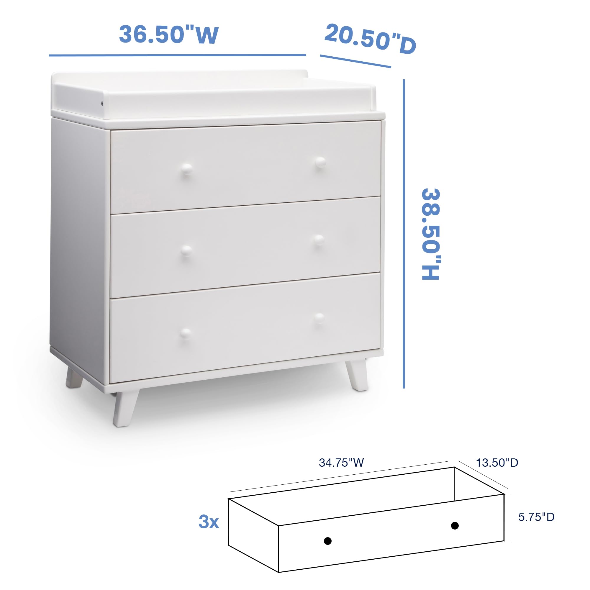 Delta Children Ava 3 Drawer Dresser with Changing Top, Greenguard Gold Certified, White
