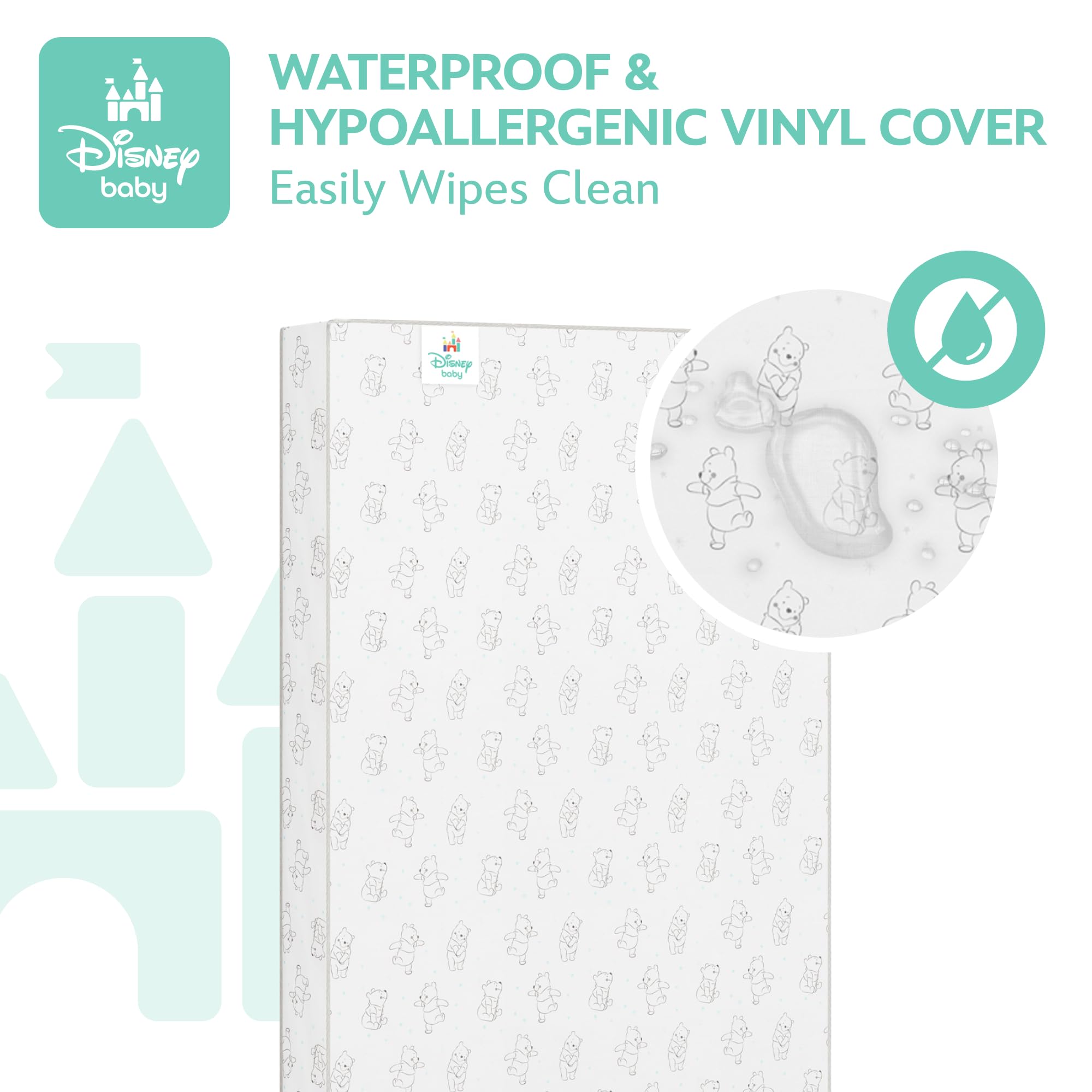 Delta Children - Disney Winnie the Pooh Crib & Toddler Mattress - Dual-Sided - Waterproof - GREENGUARD Gold Certified - Non-Toxic - Lightweight - Made in USA - Sustainable Fiber Core - 52"L x 27.5"W