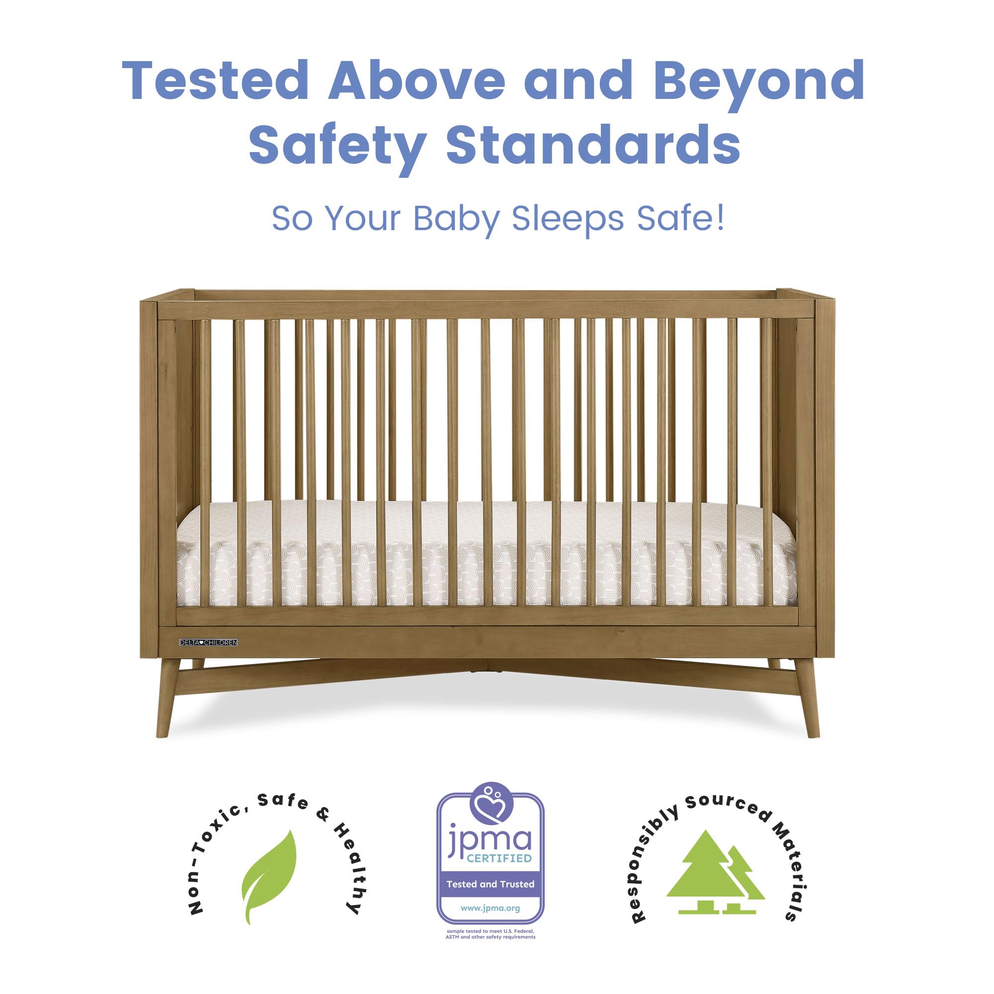 - SAFE OPTION FOR YOUR BABY: This crib is JPMA certified to meet or exceed all safety standards set by the CPSC & ASTM | Non-toxic, baby-safe painting process is lead and phthalate safe | Assembled dimensions: 55.25"W x 30.25"D x 35"H | Easy Assembly