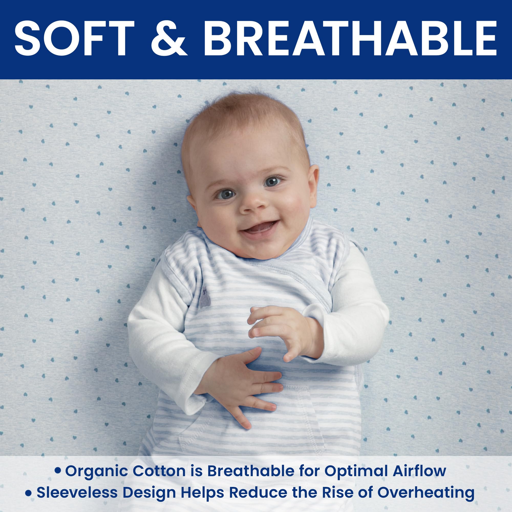 - SOFT AND BREATHABLE: 100% organic cotton is breathable for optimal airflow, helps reduce the risk of overheating and ensures a comfortable sleep environment | Sleeveless design helps reduces the risk of overheating
