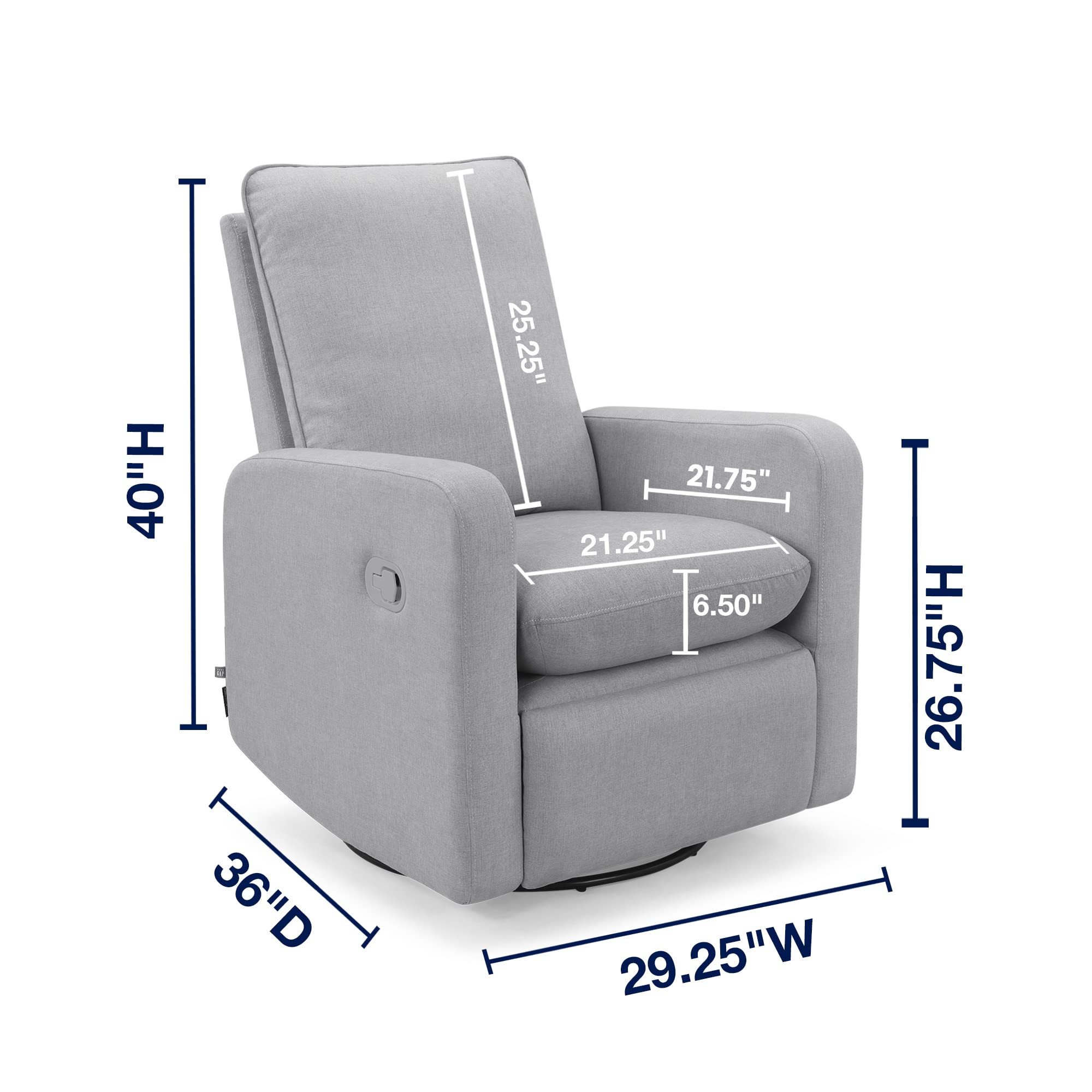 - MODERN DESIGN: Use this recliner in your nursery, living room, master bedroom, etc. | Available in five fashionable colors: Grey, Sailor, Jet Black, Blush and Artic