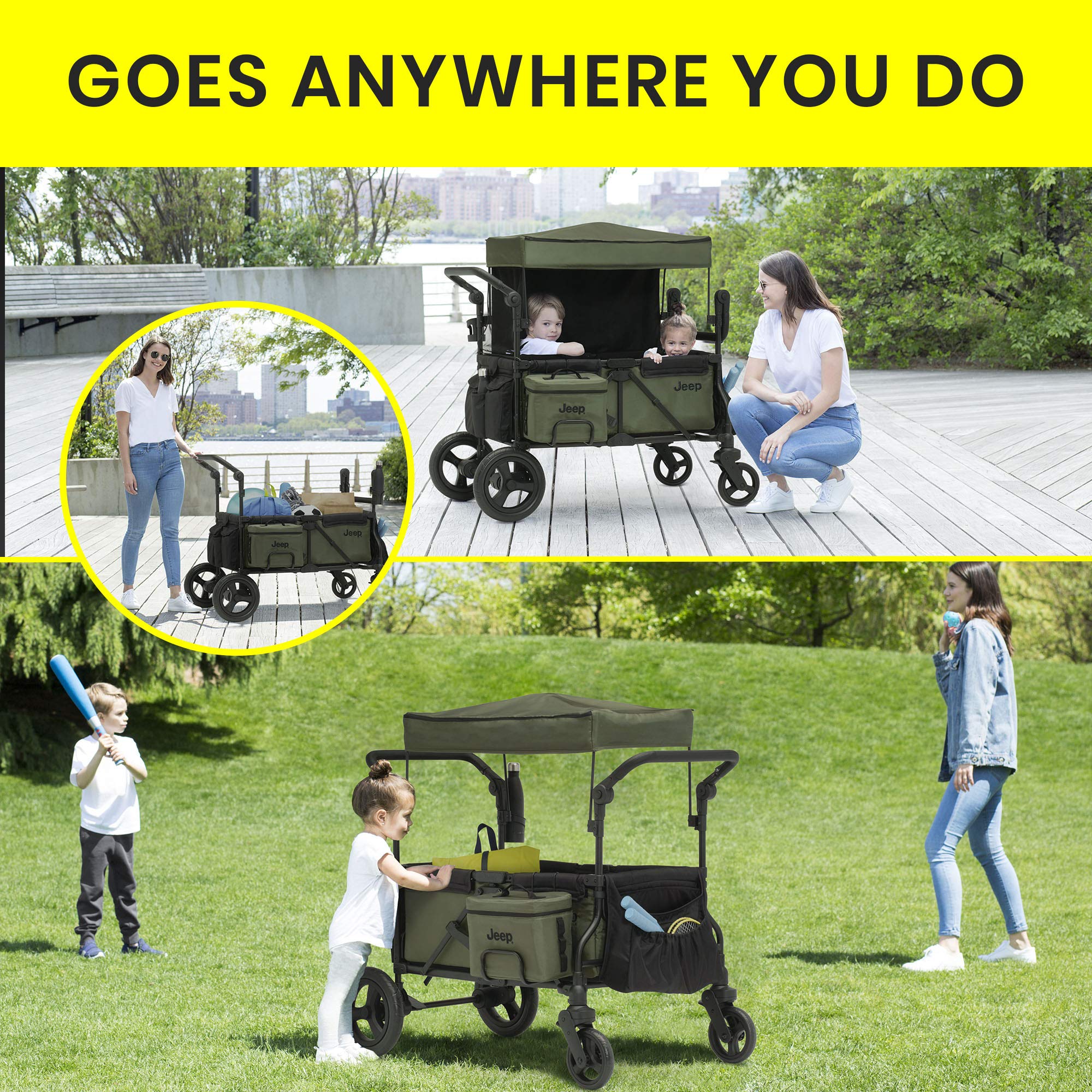 Jeep Deluxe Wrangler Stroller Wagon with Cooler Bag and Parent Organizer by Delta Children, Black/Green—